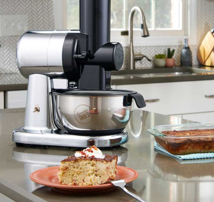 Why is Grandma Ann’s Electric Grater THE must-have tool for preparing your favorite grated ingredient? Well, if you asked Grandma Ann what made her kugelis so delicious, she would tell you, “It’s all about how you grate the potatoes.” Our electric grater is designed to grate them just right and make the job much easier than ever before.